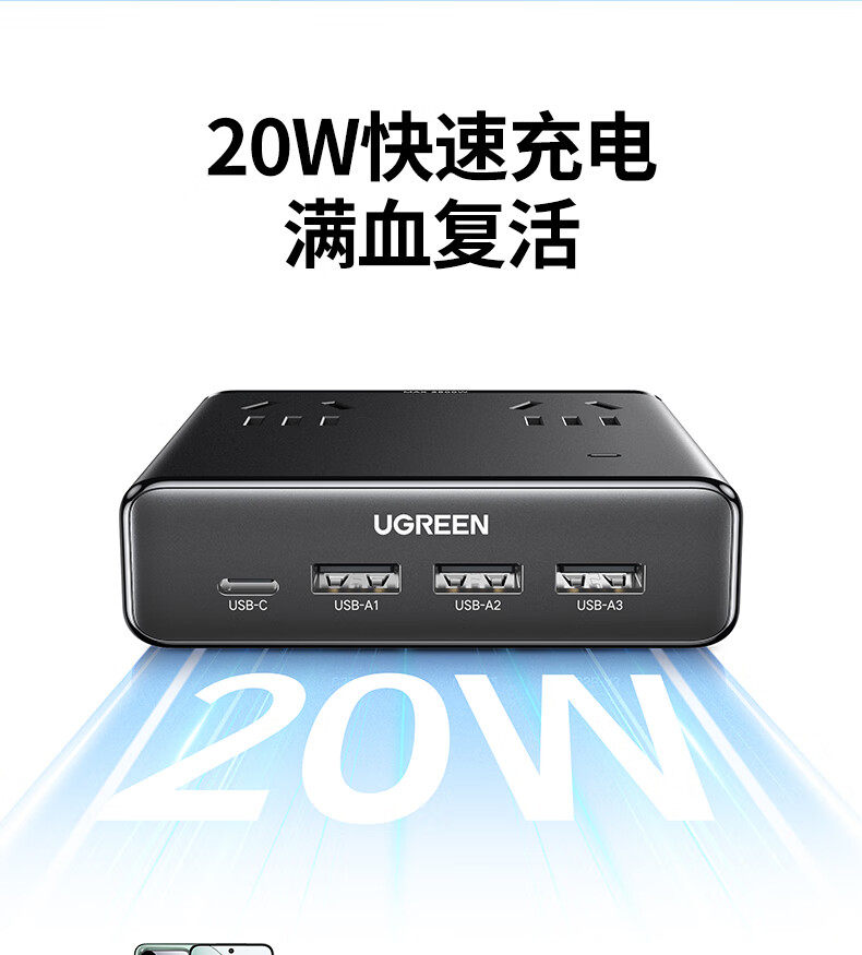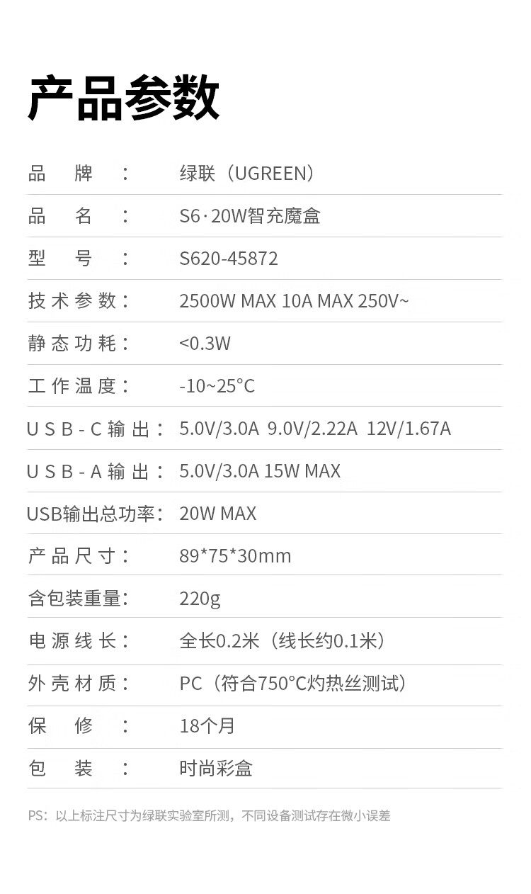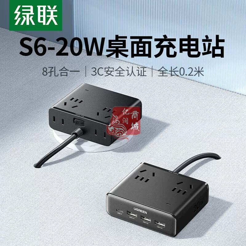 商品名称:绿联45872桌面充电站20W快充魔盒插座 商品编号:ECS020794 品牌:绿联 上架时间:2026-03-24 商品毛重:0克