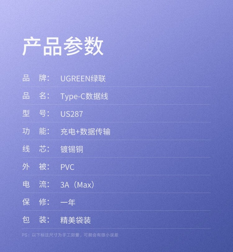 商品名称:绿联60116 USB20转TypeC数据线3A快充 1米 商品编号:ECS020808 品牌:绿联 上架时间:2026-03-25 商品毛重:0克