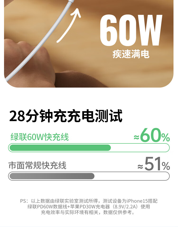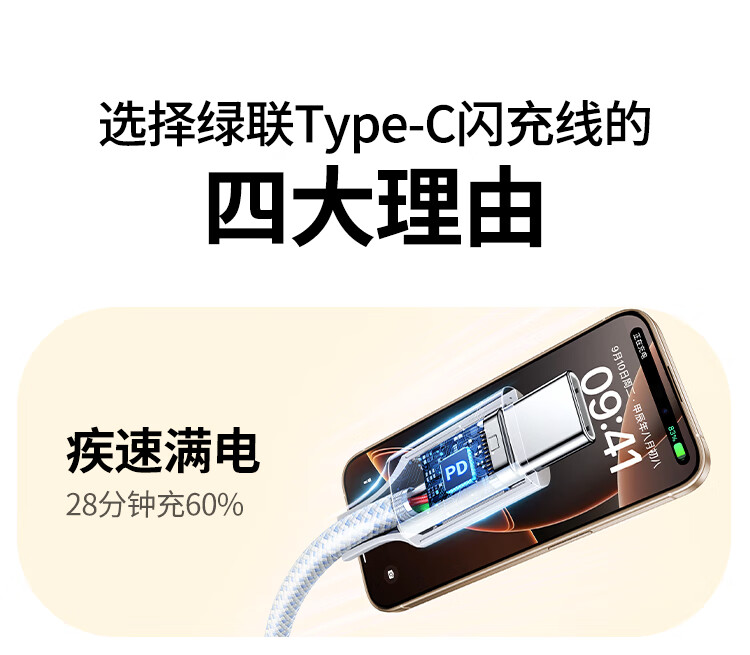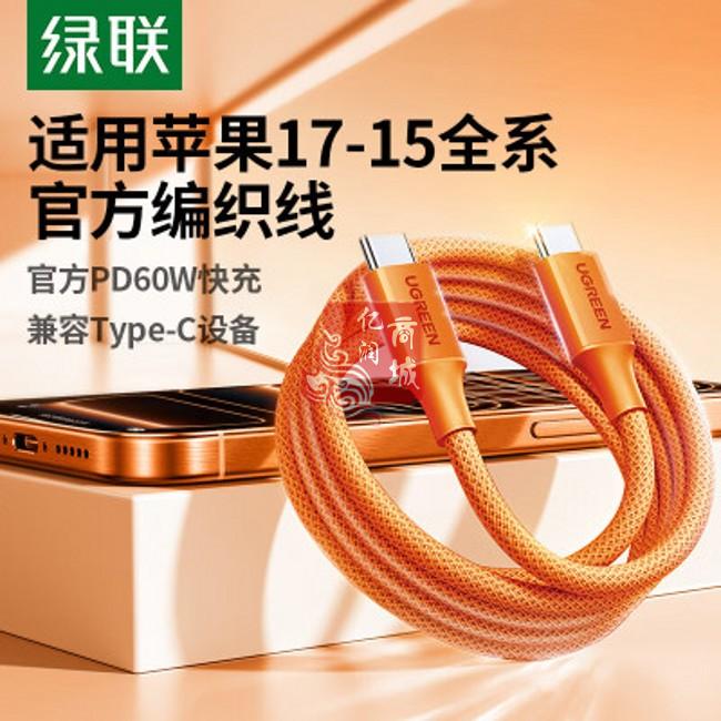 商品名称:绿联85761 60W Type-C公对公快充数据线 橙色 1米 商品编号:ECS020815 品牌:绿联 上架时间:2026-03-25 商品毛重:0克
