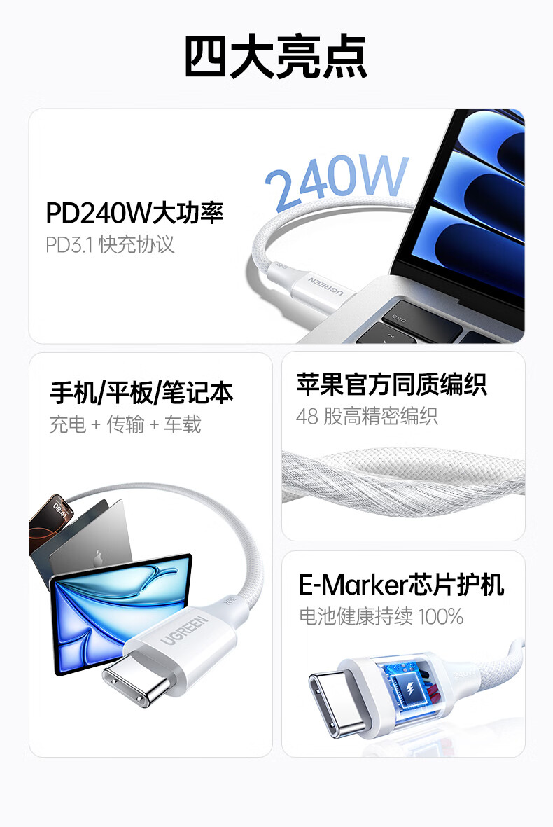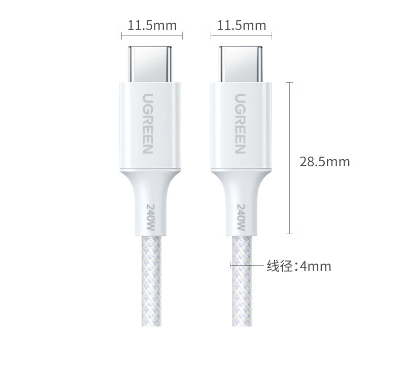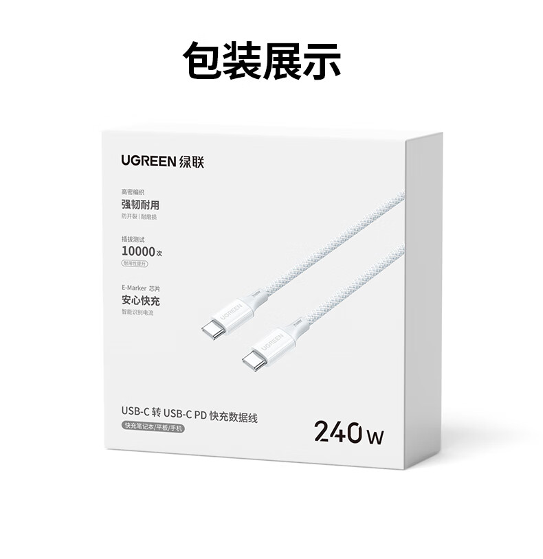 商品名称:绿联55514 1米 双头Type-C数据线PD240W快充 商品编号:ECS020822 品牌:绿联 上架时间:2026-03-25 商品毛重:0克