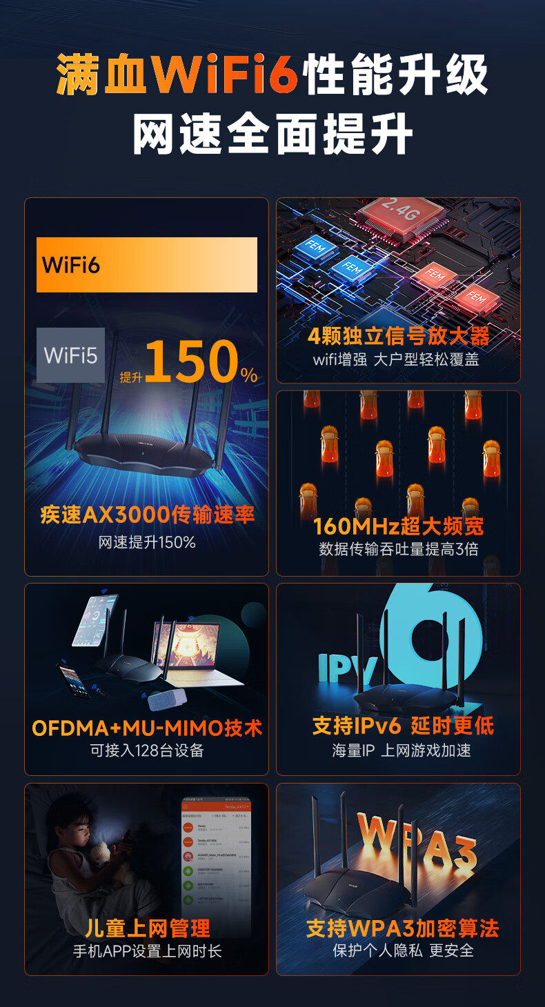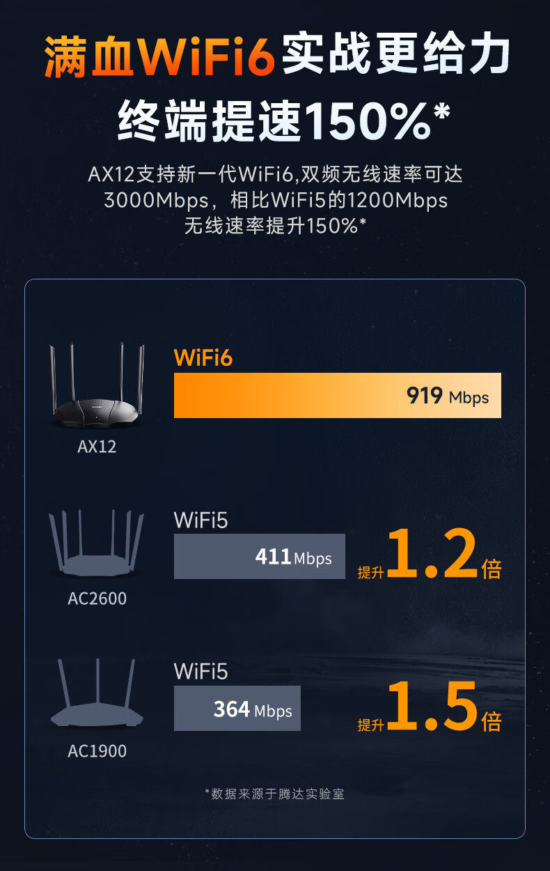 商品名称:腾达AX12旗舰版WiFi6千兆无线路由器5G双频 商品编号:ECS020828 品牌:腾达 上架时间:2026-03-25 商品毛重:0克
