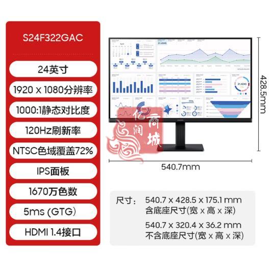 商品名称:三星(SAMSUNG) S24F322GAC 24寸 无边显示器 1920*1080 IPS HDMI+VGA 120ZH 商品编号:ECS020861 品牌:三星 上架时间:2026-03-26 商品毛重:0克