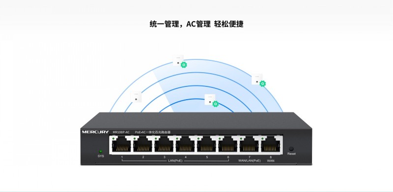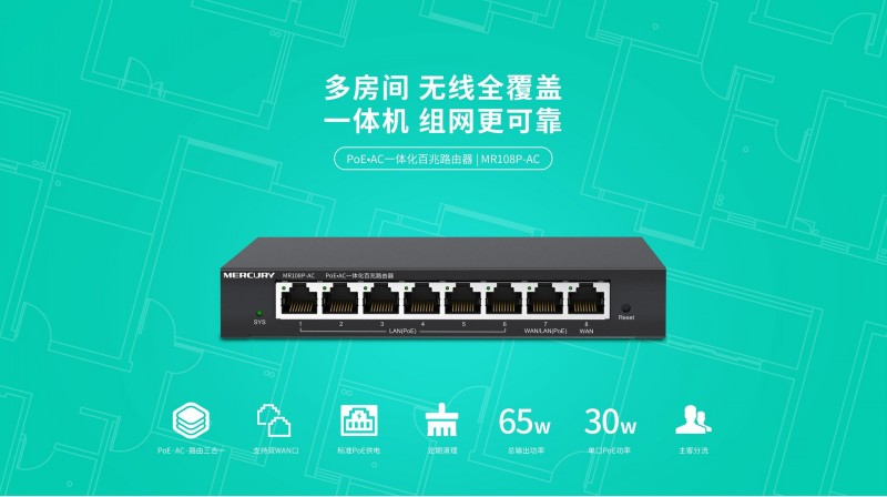 商品名称:水星 MR108P-AC 商用8口百兆POE一体化路由器 商品编号:ECS020871 品牌:水星 上架时间:2026-03-26 商品毛重:0克