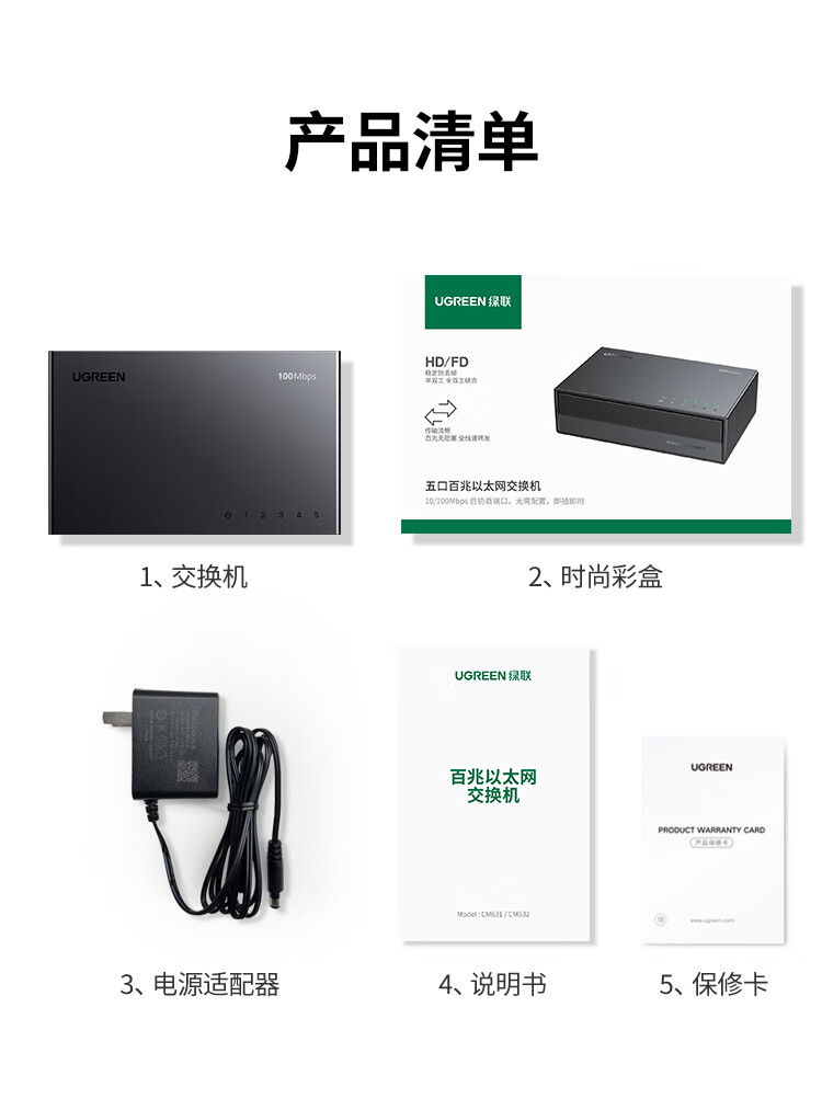 商品名称:绿联 35047 8口百兆交换机 商品编号:ECS020896 品牌:绿联 上架时间:2026-03-27 商品毛重:0克