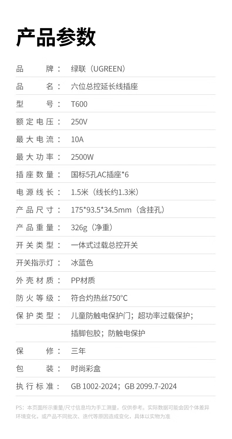商品名称:绿联 95795 6五孔总控 T6延长线斜面排插 白色 2米 商品编号:ECS020902 品牌:绿联 上架时间:2026-03-27 商品毛重:0克