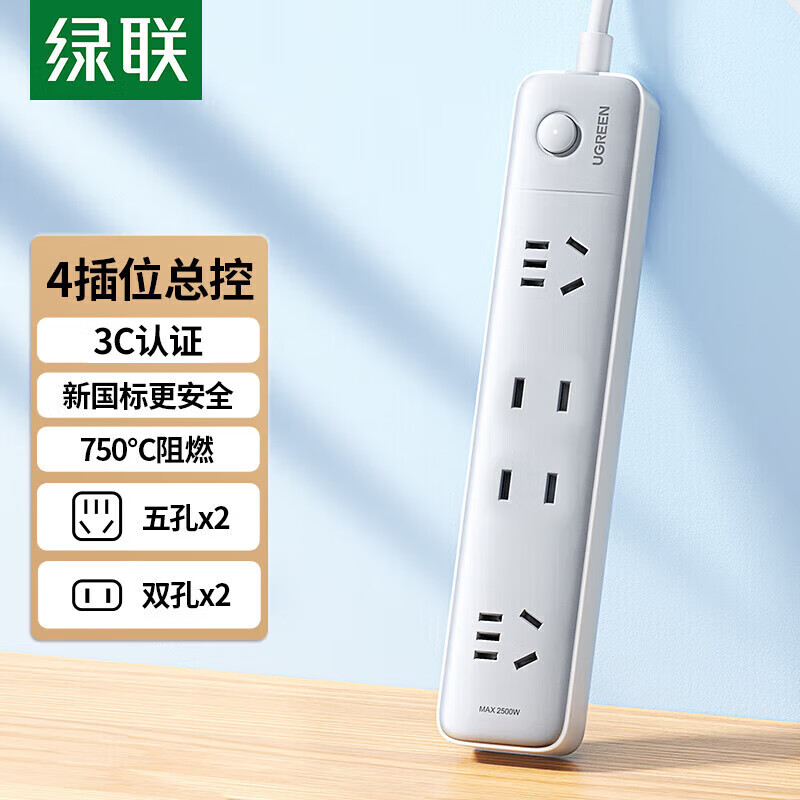 商品名称:绿联25133 四位AC-2位五孔+2位两孔-总控-全长1米插座 商品编号:ECS020938 品牌:绿联 上架时间:2026-03-28 商品毛重:0克
