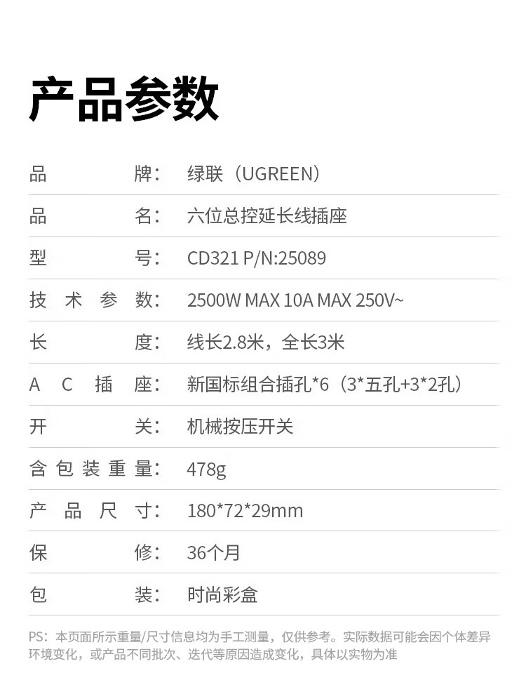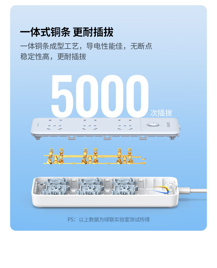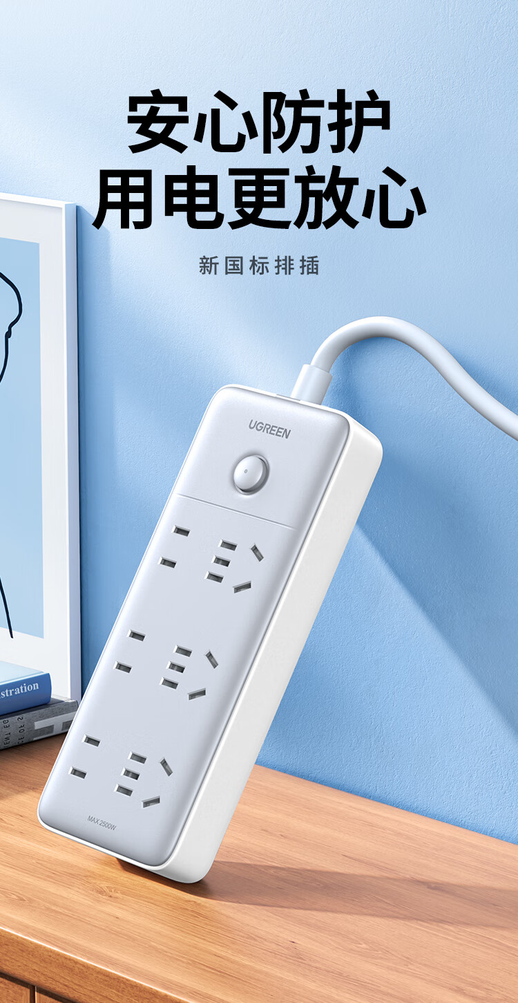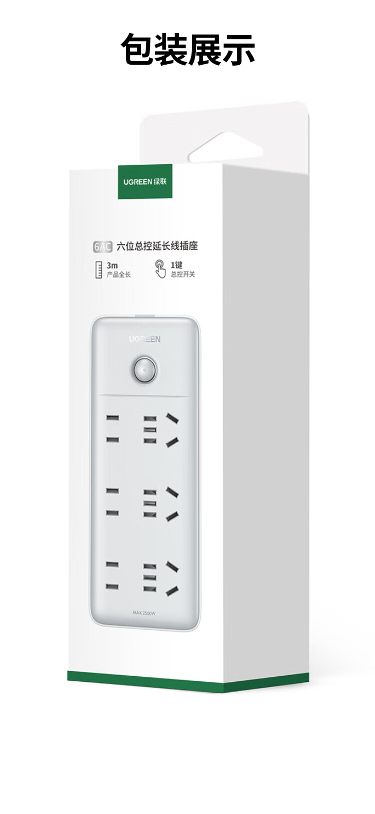 商品名称:绿联 25090 六位AC-3位五孔+3位两孔-总控插座-全长5米 商品编号:ECS020941 品牌:绿联 上架时间:2026-03-28 商品毛重:0克