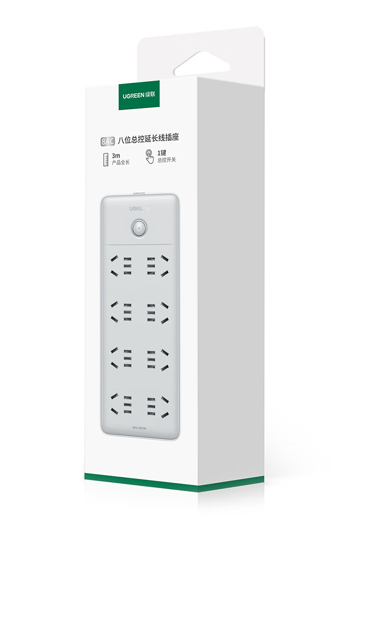 商品名称:绿联 15304 八位AC-8位五孔-总控插座-灰色-全长3米 商品编号:ECS020945 品牌:绿联 上架时间:2026-03-28 商品毛重:0克
