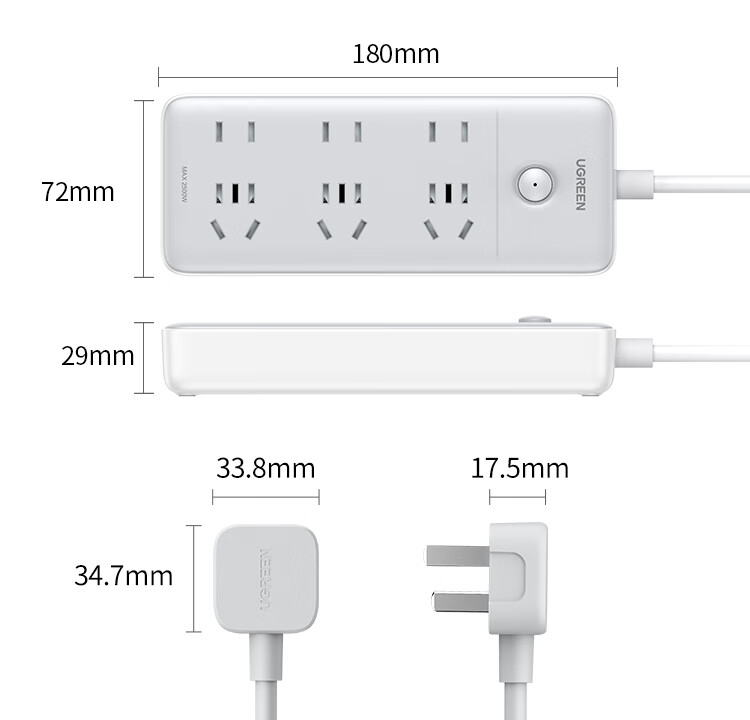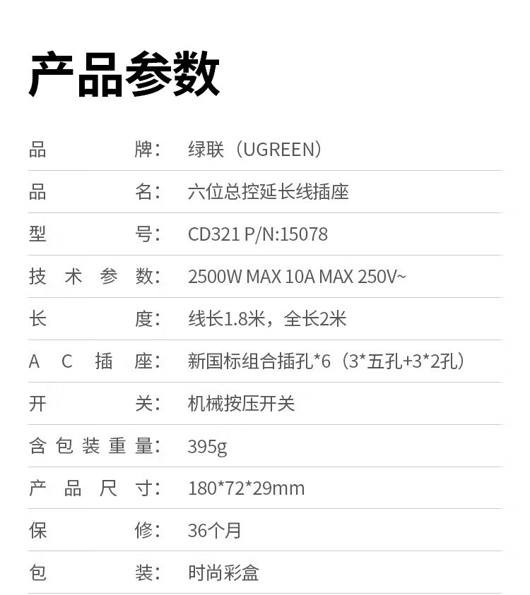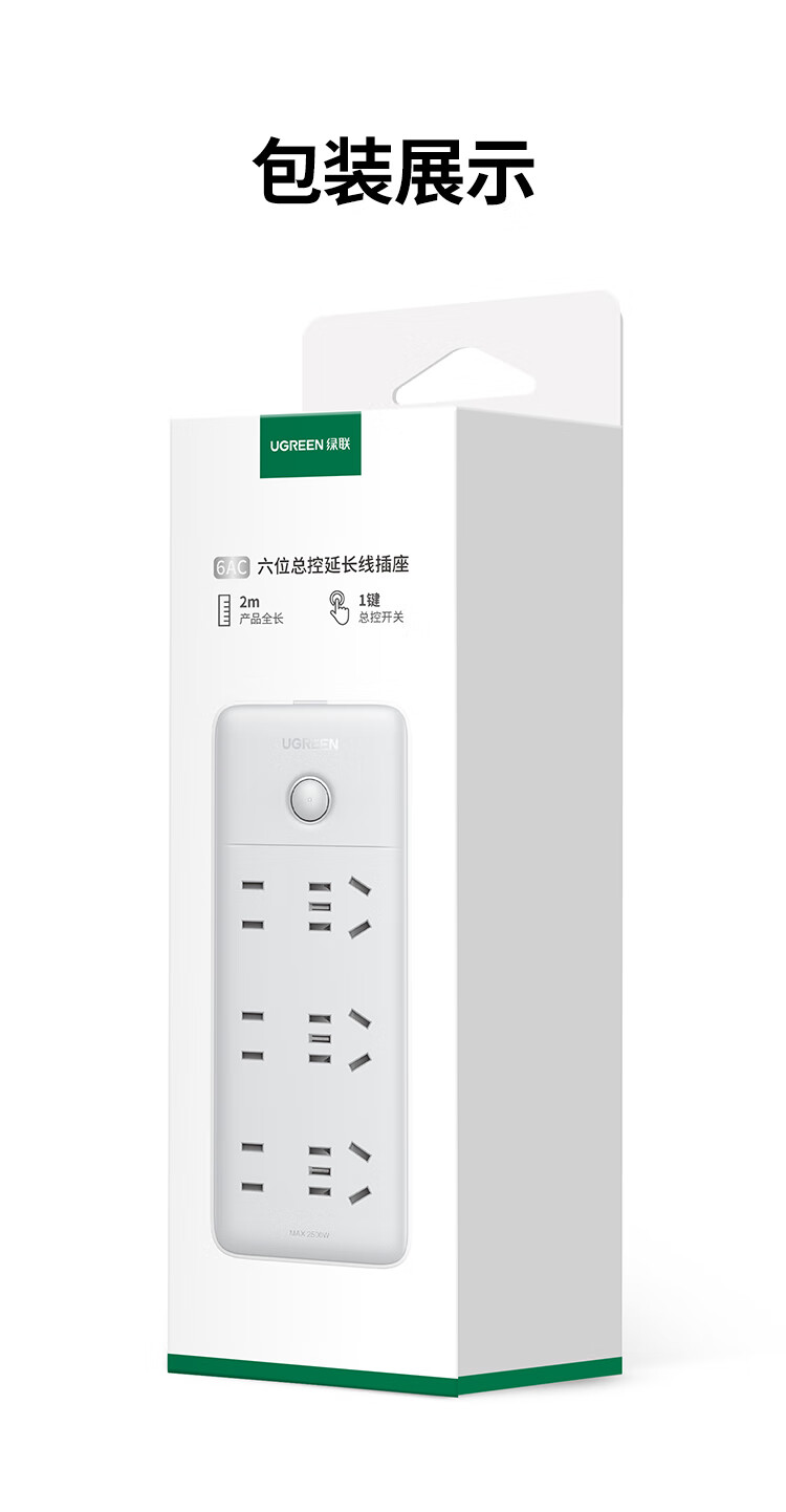商品名称:绿联 15078六位AC-3位五孔+3位两孔-总控插座-灰色-全长2米 商品编号:ECS020946 品牌:绿联 上架时间:2026-03-28 商品毛重:0克