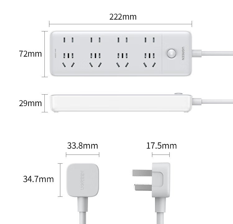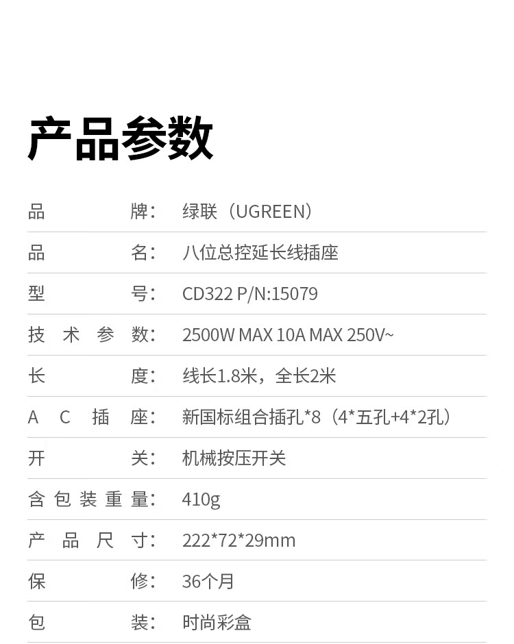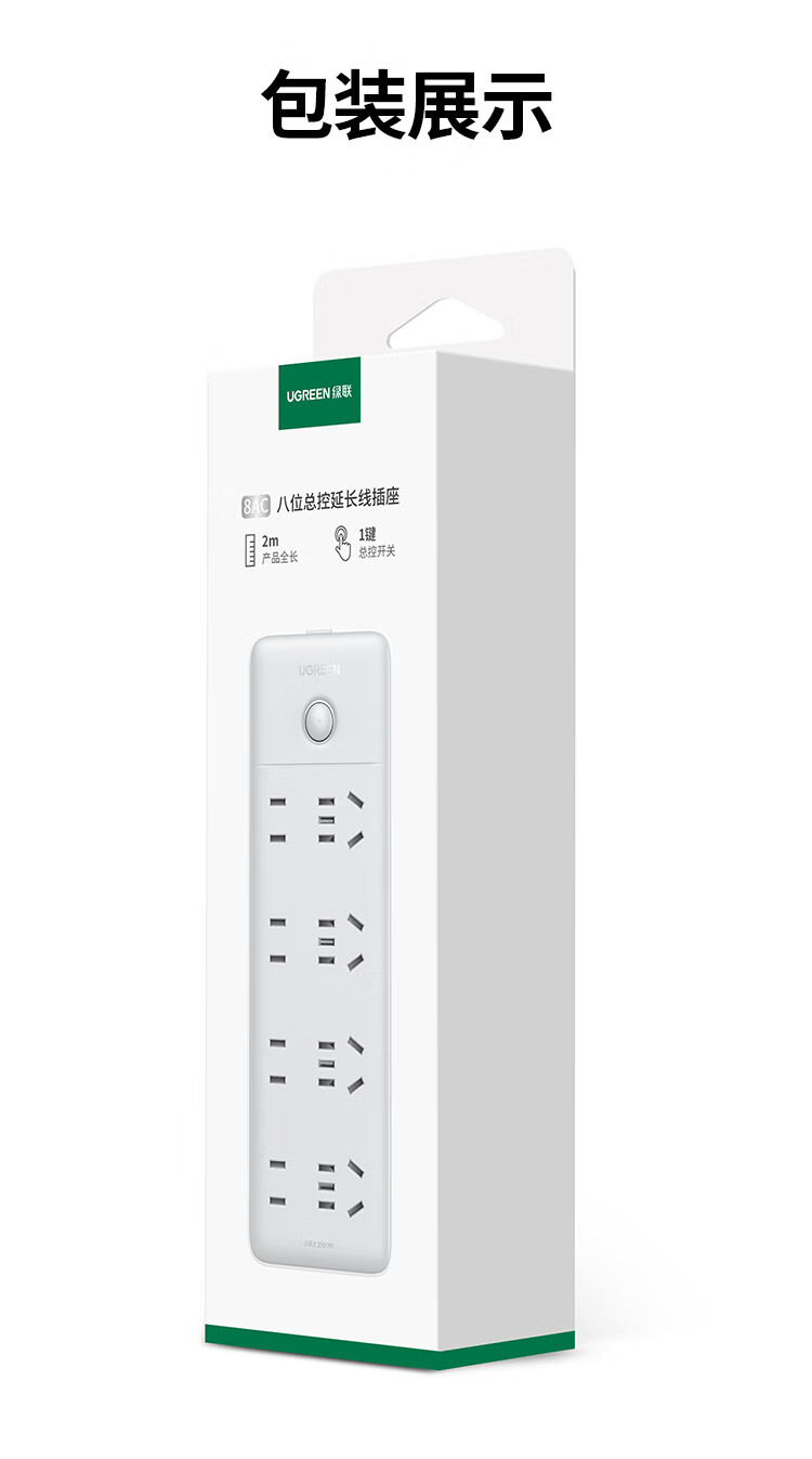 商品名称:绿联 15079 八位AC-4位五孔+4位两孔-总控插座-灰色-全长2米 商品编号:ECS020947 品牌:绿联 上架时间:2026-03-28 商品毛重:0克