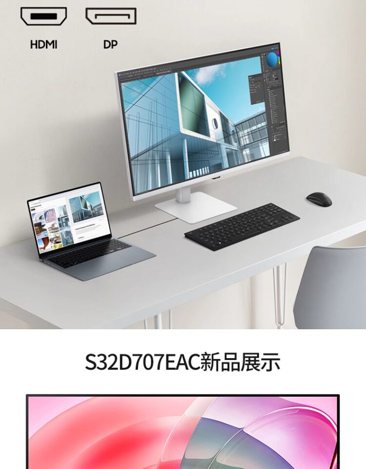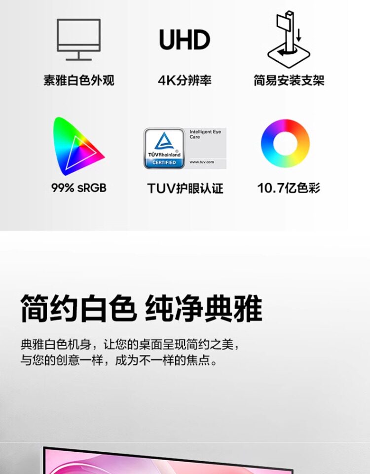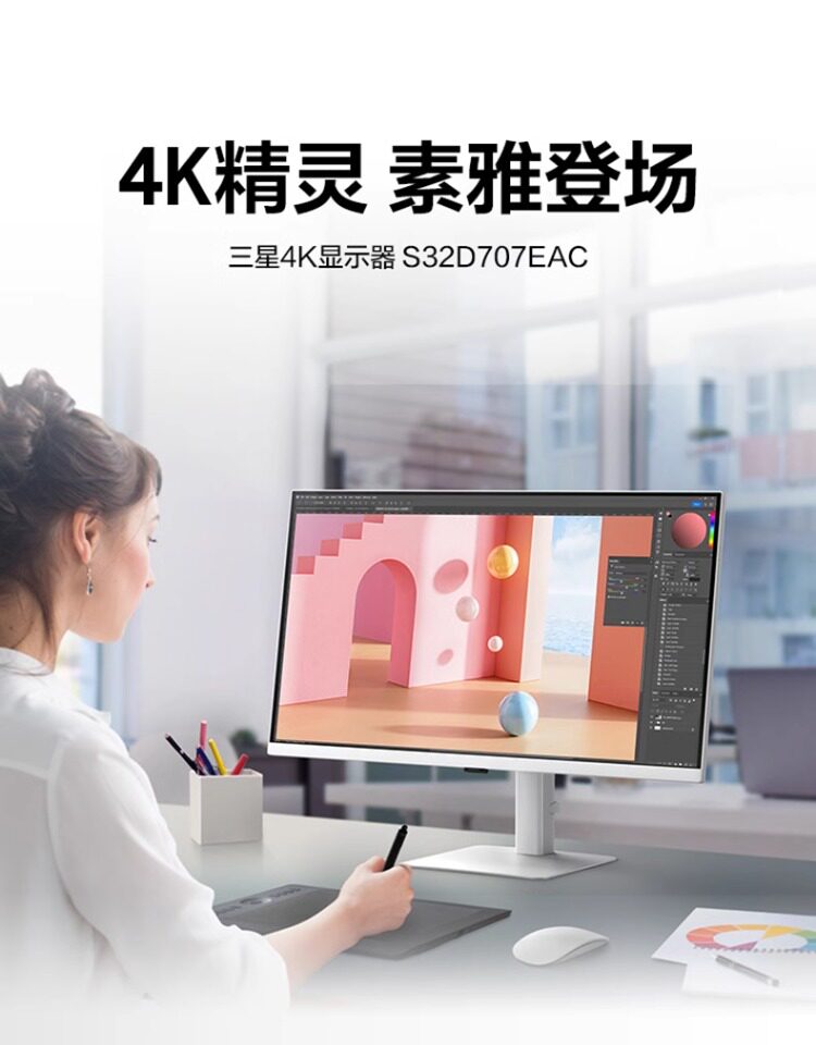 商品名称:三星 S32D707EAC 4K显示器 白色32英寸台式电脑屏幕PS5 专业设计 商品编号:ECS020964 品牌:三星 上架时间:2026-03-28 商品毛重:0克