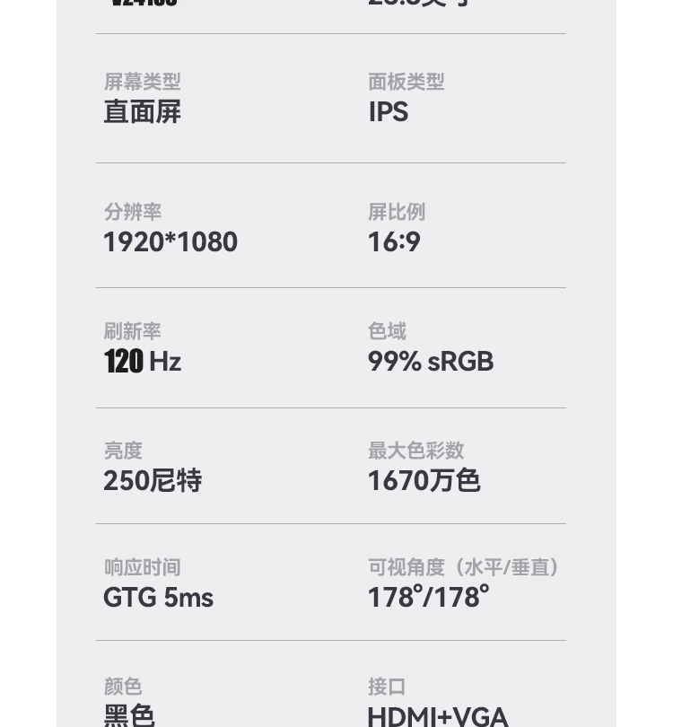 商品名称:HKC 2418S 24英寸120Hz IPS家用办公显示器 商品编号:ECS021037 品牌:HKC/惠科 上架时间:2026-03-31 商品毛重:0克