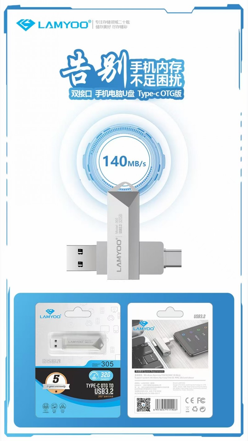 商品名称:蓝雨305 64G TC OTG+电脑2用高速3.2 固带版U盘 商品编号:ECS013959 品牌:蓝雨 上架时间:2021-09-27 商品毛重:0克