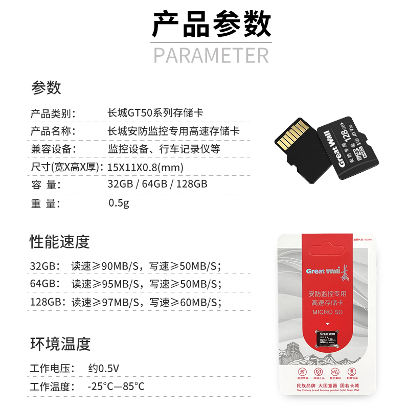 商品名称:长城 TF卡64G 安防监控专用高速存储卡 商品编号:ECS017129 品牌:长城 上架时间:2023-03-18 商品毛重:0克