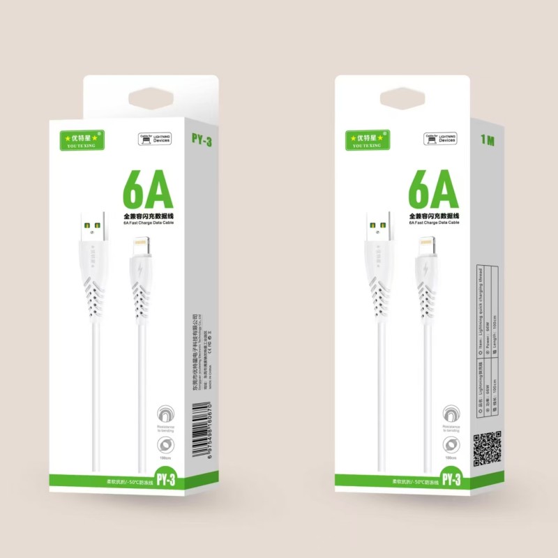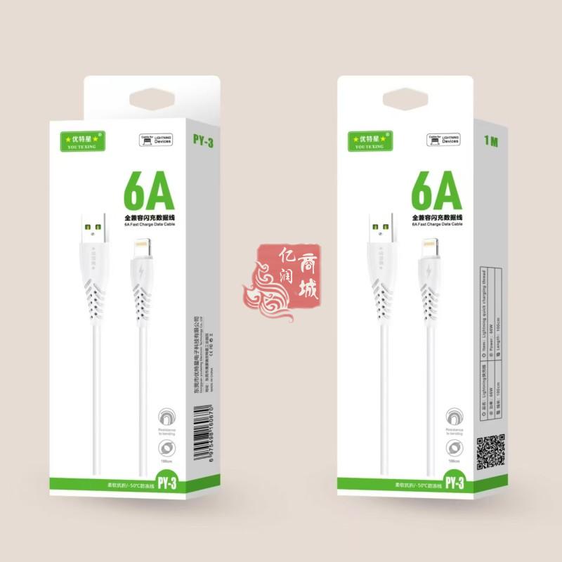 商品名称:优特星 PY-3 1米 6A苹果数据线 商品编号:ECS020059 品牌:优特星 上架时间:2025-08-29 商品毛重:0克