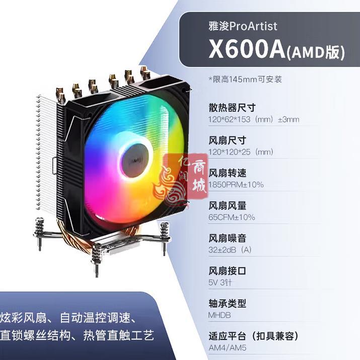 商品名称:雅俊 X600A 黑色 AMD专用炫彩风扇 商品编号:ECS020200 品牌:雅俊 上架时间:2025-09-27 商品毛重:0克