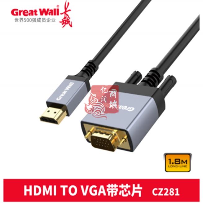 商品名称:长城CZ281 HDMI转VGA带芯片 铝合金款 1.8米 商品编号:ECS020210 品牌:长城 上架时间:2025-10-07 商品毛重:0克