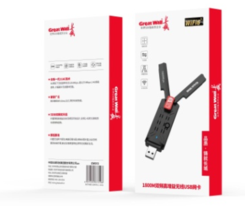 商品名称:长城CW313 1800M无线网卡 WIFI6 双频2.4G+5.8G 商品编号:ECS020219 品牌:长城 上架时间:2025-10-07 商品毛重:0克 1800M无线网卡 双频2.4G+5.8G 支持速度: 574Mbps+1201Mbps 外置5dBi增益天线,加强信号 支持Windows 10/11操作系统 USB 2.0接口 支持WIFI6协议