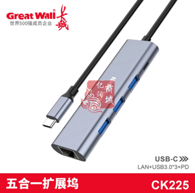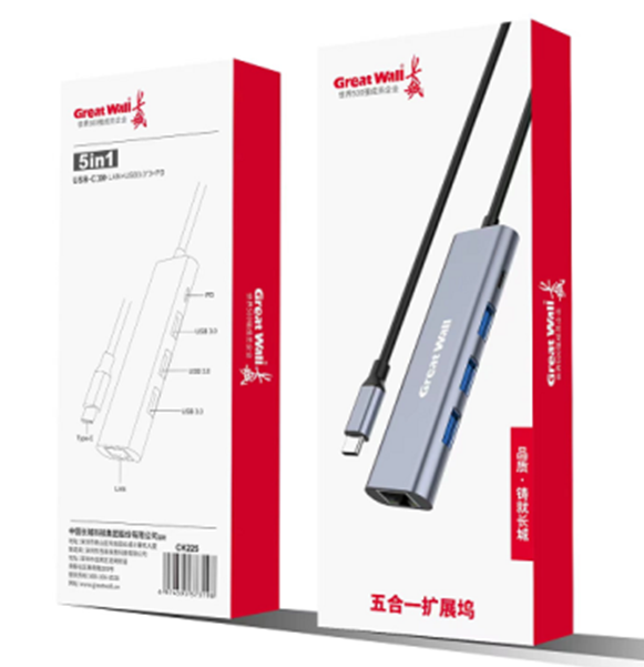 商品名称:长城CK225 5合1扩展坞 RJ45千兆+USB3.0*3+PD 商品编号:ECS020220 品牌:长城 上架时间:2025-10-07 商品毛重:0克 5合1扩展坞: RJ45千兆+USB3.0*3+PD