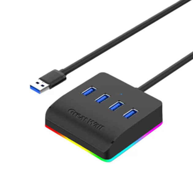 商品名称:长城CJ278-0.5米 USB3.0四口RGB彩光 HUB集线器 商品编号:ECS020226 品牌:长城 上架时间:2025-10-07 商品毛重:0克 USB3.0四口RGB彩光 集线器 0.5米