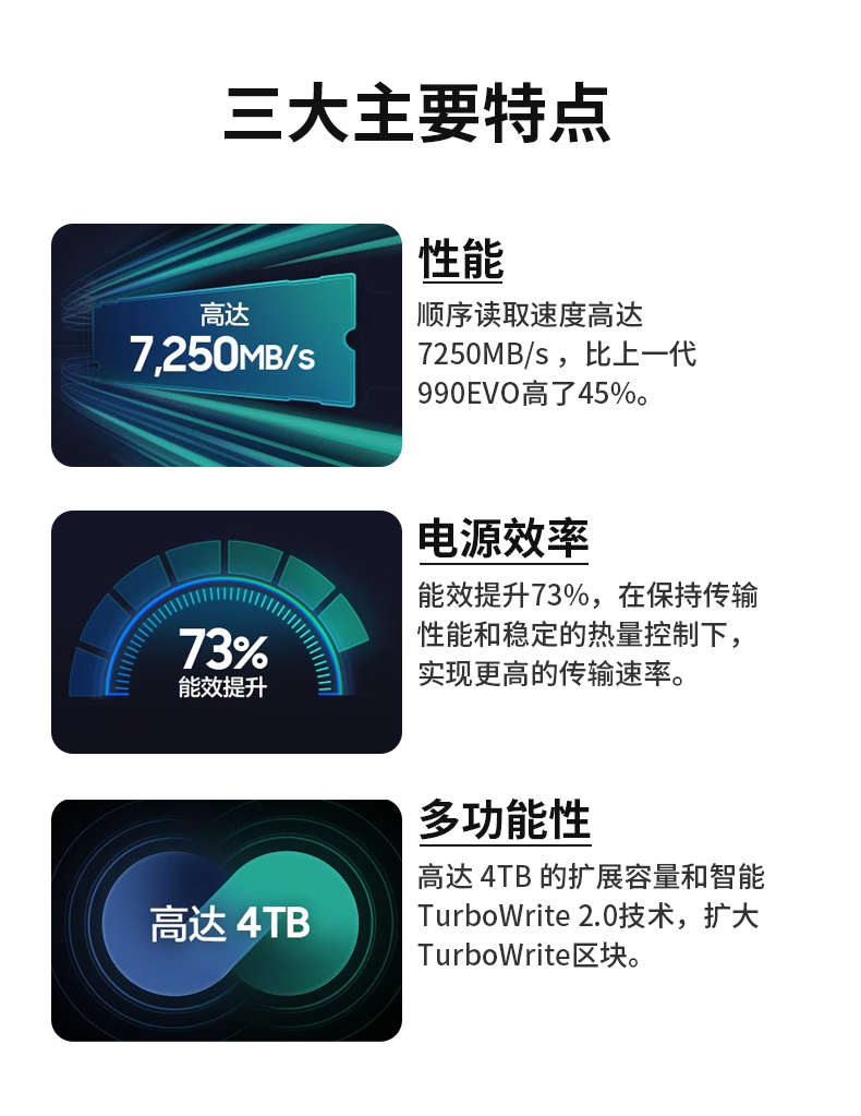 商品名称:三星990EVO plus 2T PCIE4.0 m.2固态硬盘 商品编号:ECS020259 品牌:三星 上架时间:2025-10-22 商品毛重:0克