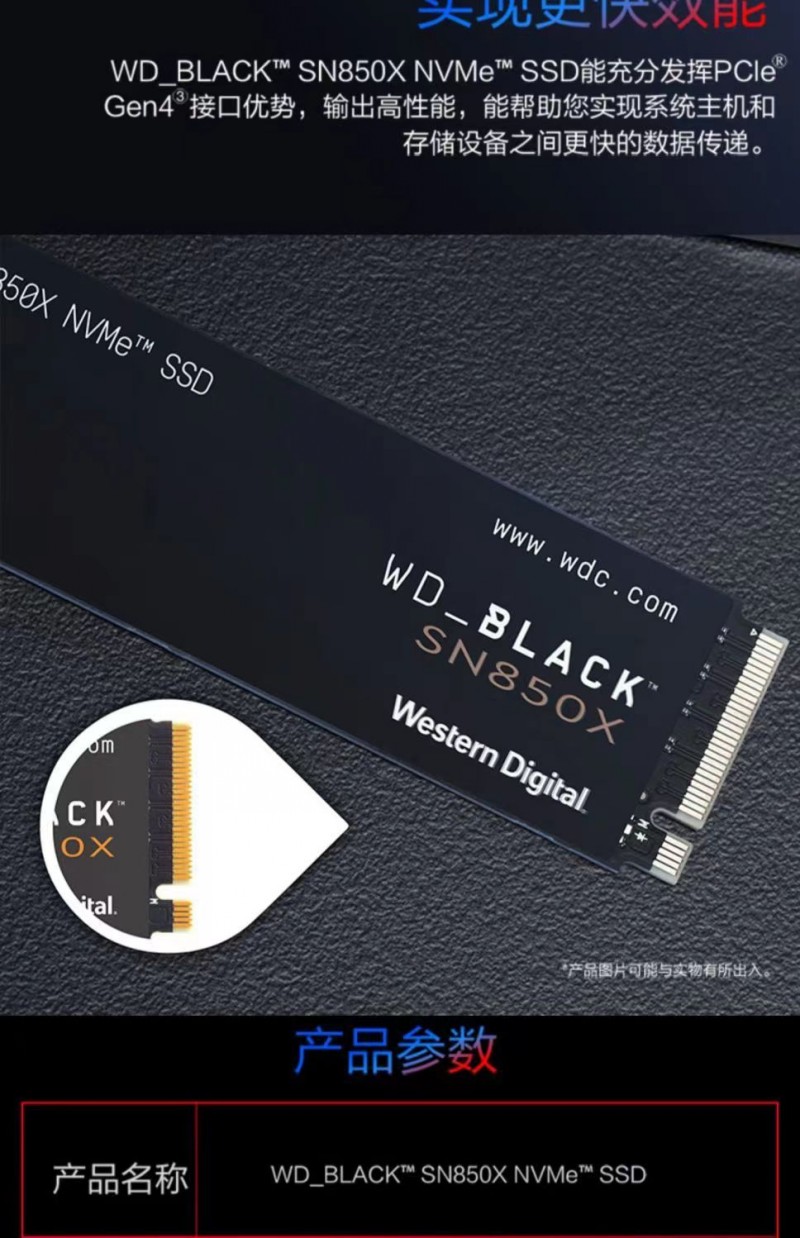 商品名称:WD西部数据黑盘 SN850X 2T PCIE4.0 M.2 NVME 固态硬盘 商品编号:ECS020265 品牌:WD/西部数据 上架时间:2025-10-22 商品毛重:0克