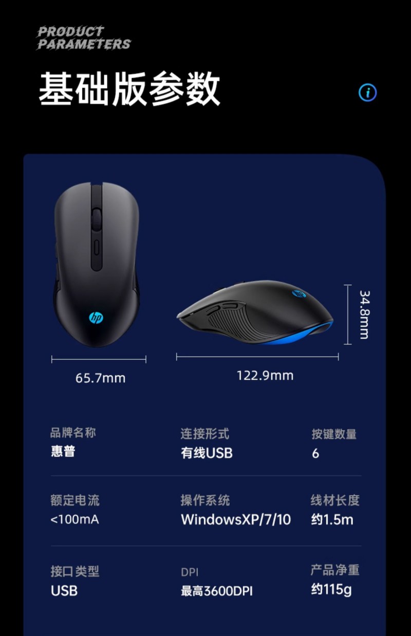 商品名称:惠普【M280黑色静音】游戏发光鼠标 商品编号:ECS020316 品牌:hp/惠普 上架时间:2025-11-17 商品毛重:0克