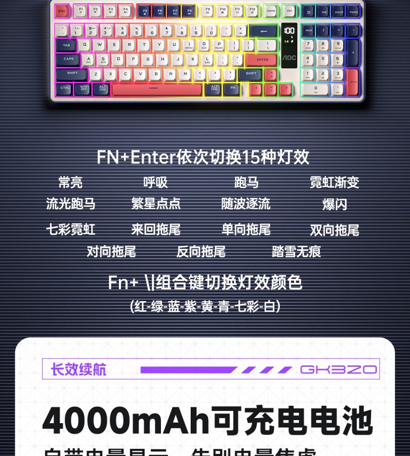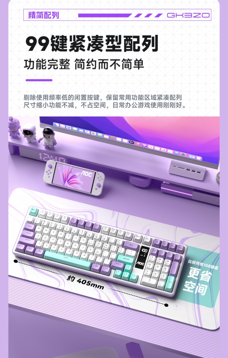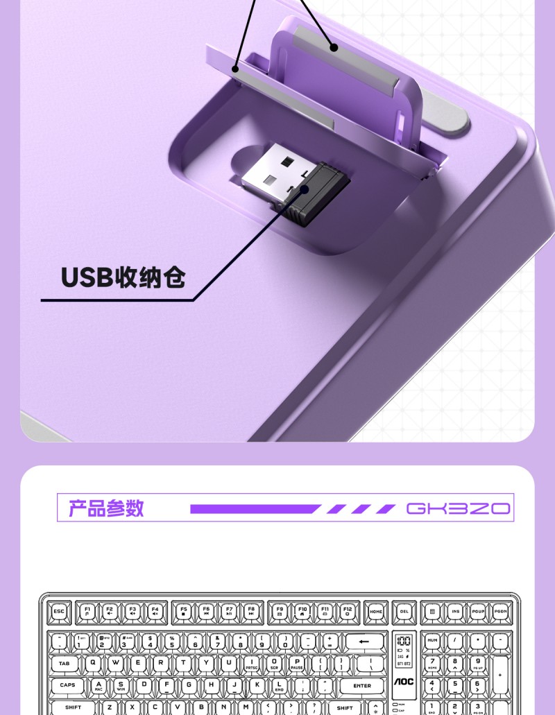 商品名称:AOC【GK320藏蓝绮梦】三模键盘 商品编号:ECS020371 品牌:AOC/冠捷 上架时间:2025-11-26 商品毛重:0克