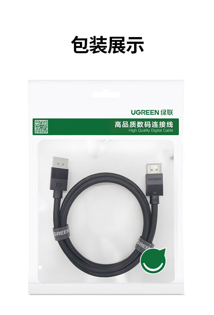 商品名称:绿联85251 2米DP线2.1版16K60Hz 8K120Hz 公对公8K高清连接线 商品编号:ECS021075 品牌:绿联 上架时间:2026-04-03 商品毛重:0克