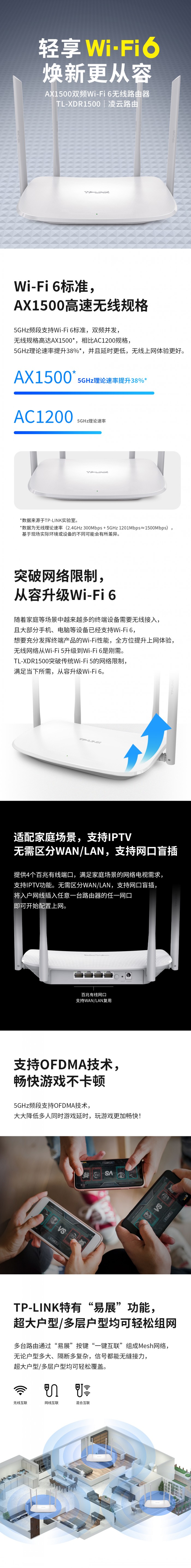 TP TL-XDR1500 AX1500百兆4天线双频Wi-Fi6无线路由器的详细介绍